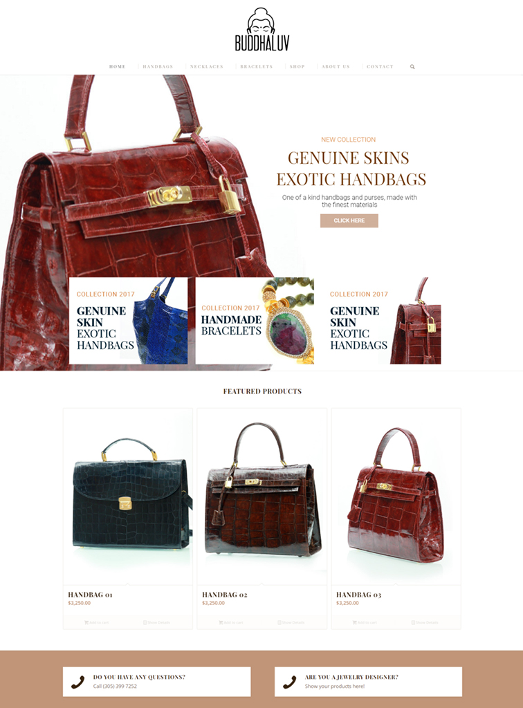 Design an E-commerce Wordpress site. Project also included photography and photo retouching for all Handbags and Jewelry.