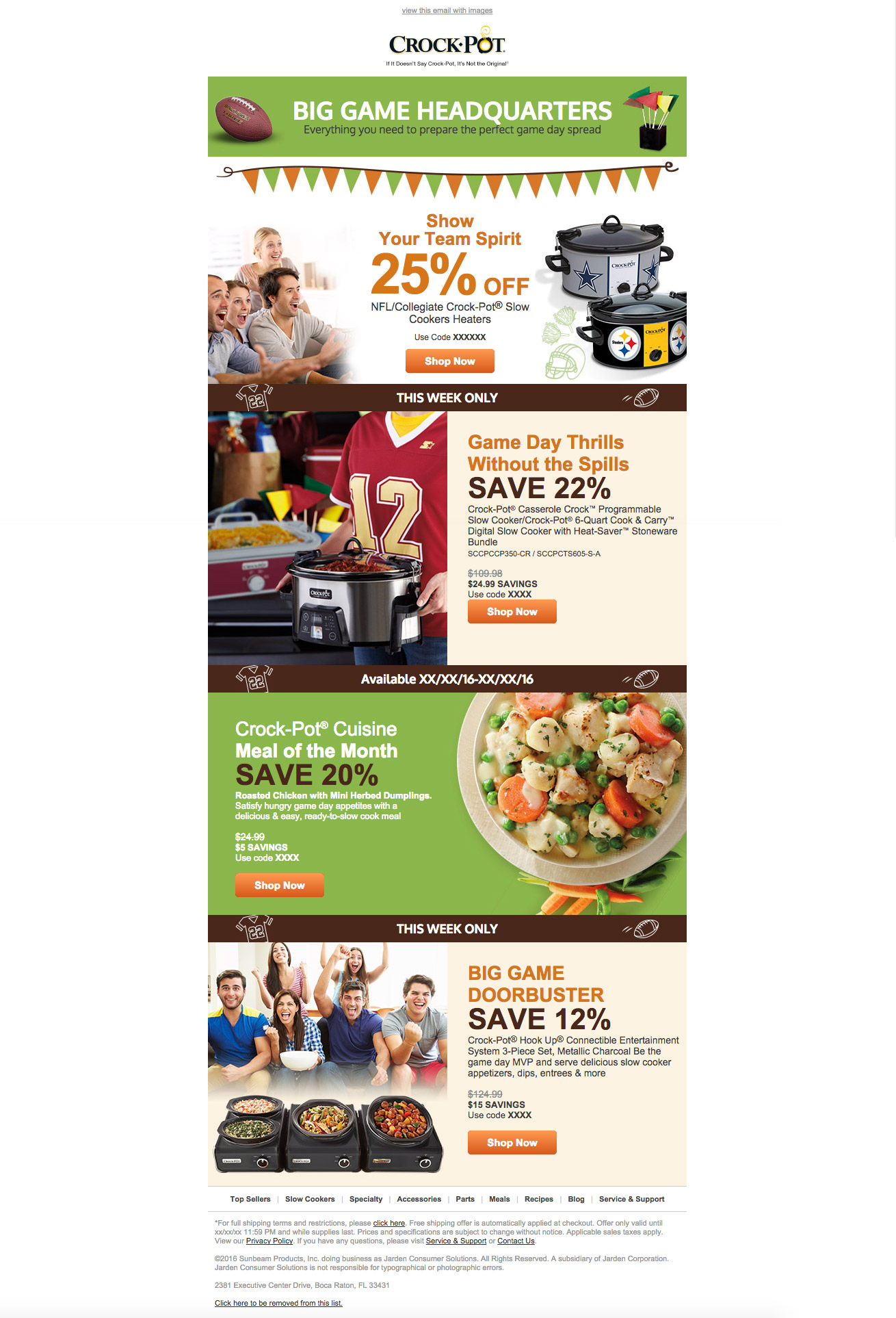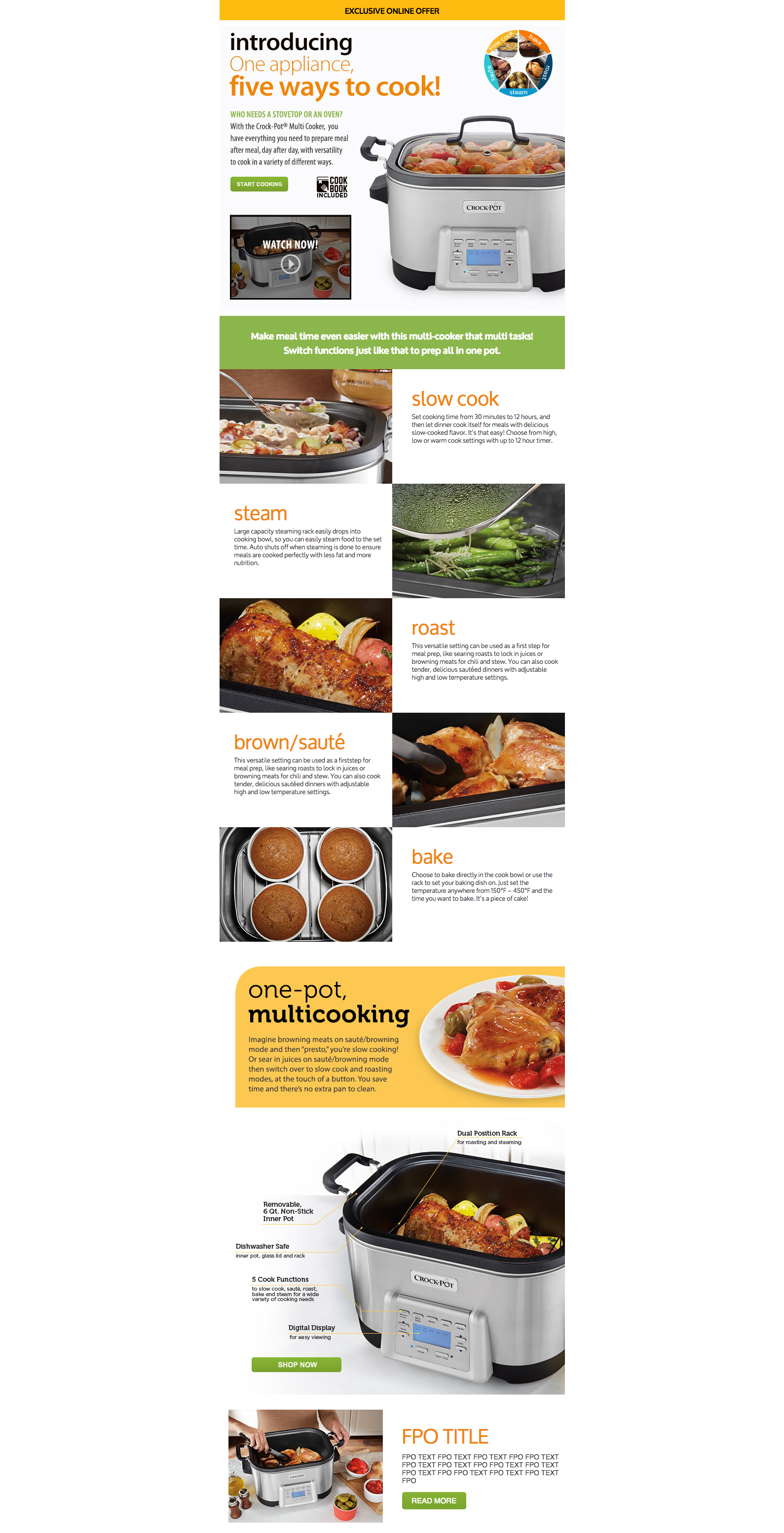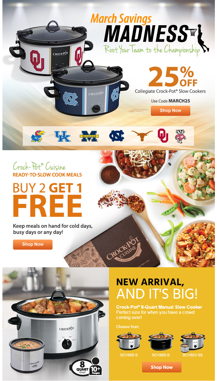 Promotional email design for Crockpot. My Role in the project went from concept to completion (Designer and Developer). Software used: Dreamweaver, Photoshop