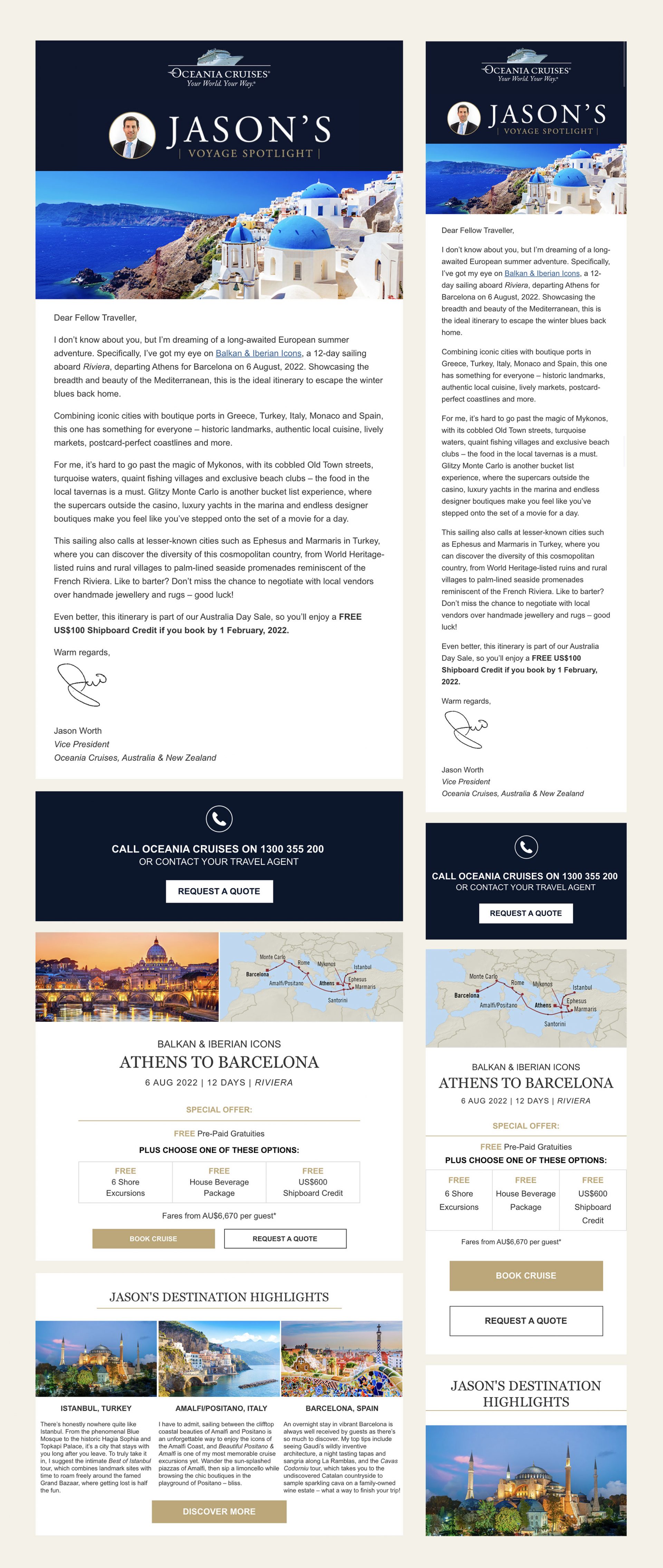 Design a responsive email based on a specific brief provided by Marketing Manager. Software used: Photoshop and Dreamweaver. Template developed and optimized for different email platforms. Testing and optimization made in Litmus and email was deployed using Cheetah Marketing Suite.